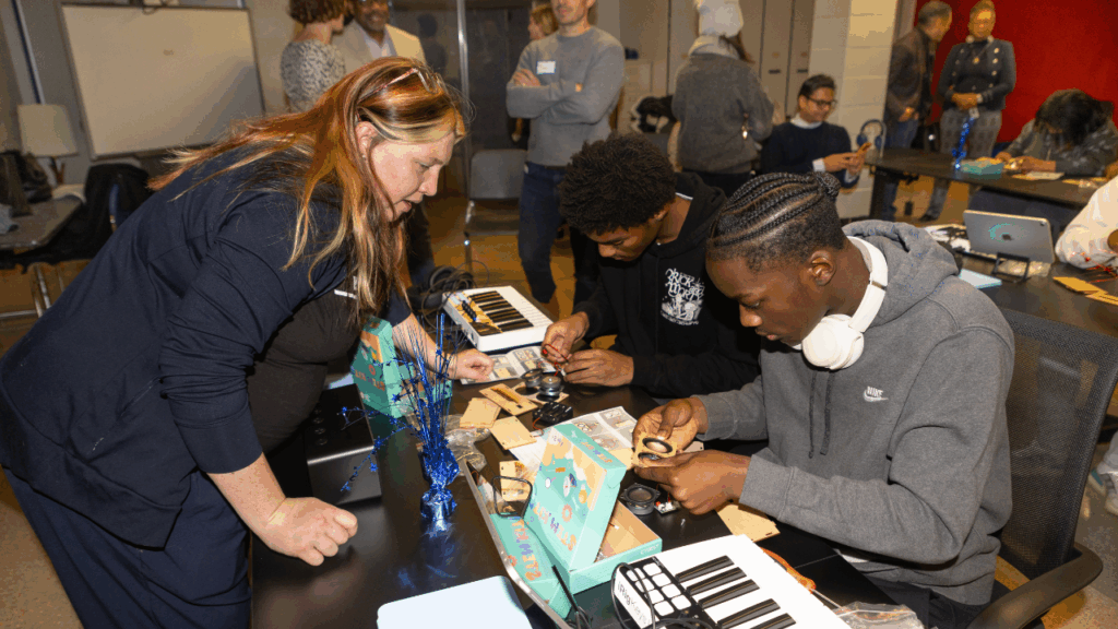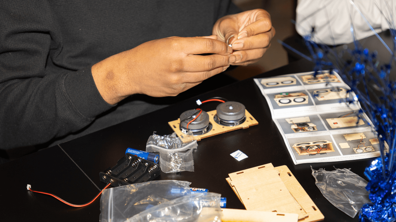 The room lit up as students powered on their speakers for the first time — hearing their hard work come alive through systems they built themselves.